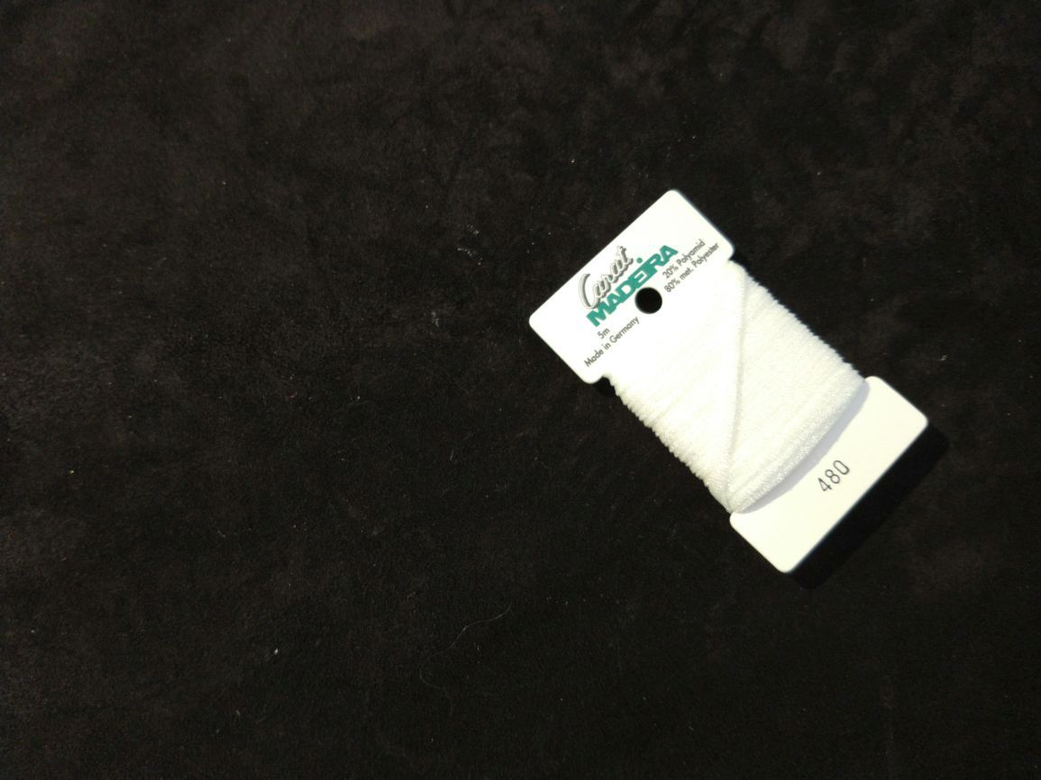 kaartje met 5 m band 4 mm breed, 20%polyamide, 80% met. Polyester
