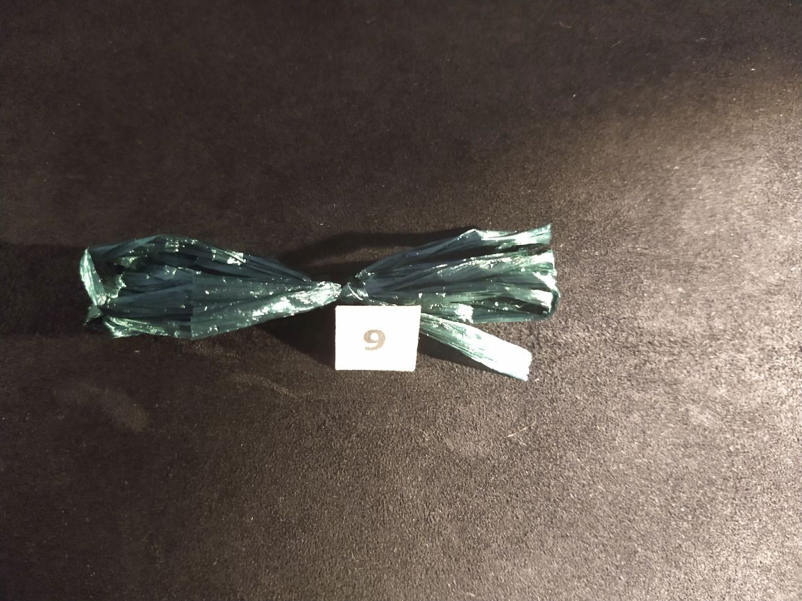 kunstraffia, geschikt om op te borduren en in 3D-toepassingen. Deze raffia is ook zeer geschikt om in de lengte te splitsen en daarna met een chenillenaald te borduren. ca 30 mm breed, bundel van 1,5 m voor €1,50
