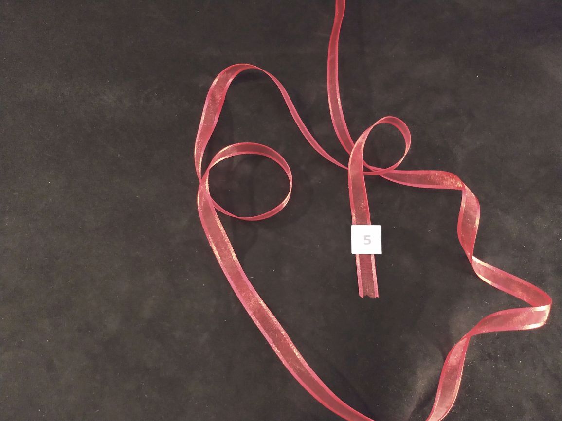 soepel organza lint van 11 mm breed, met aan beide zijden een satijn ingeweven bies van 2 mm breed. prijs per meter.dit lint is mooi om te gebruiken voor lintroosjes en experimenteel opborduren.