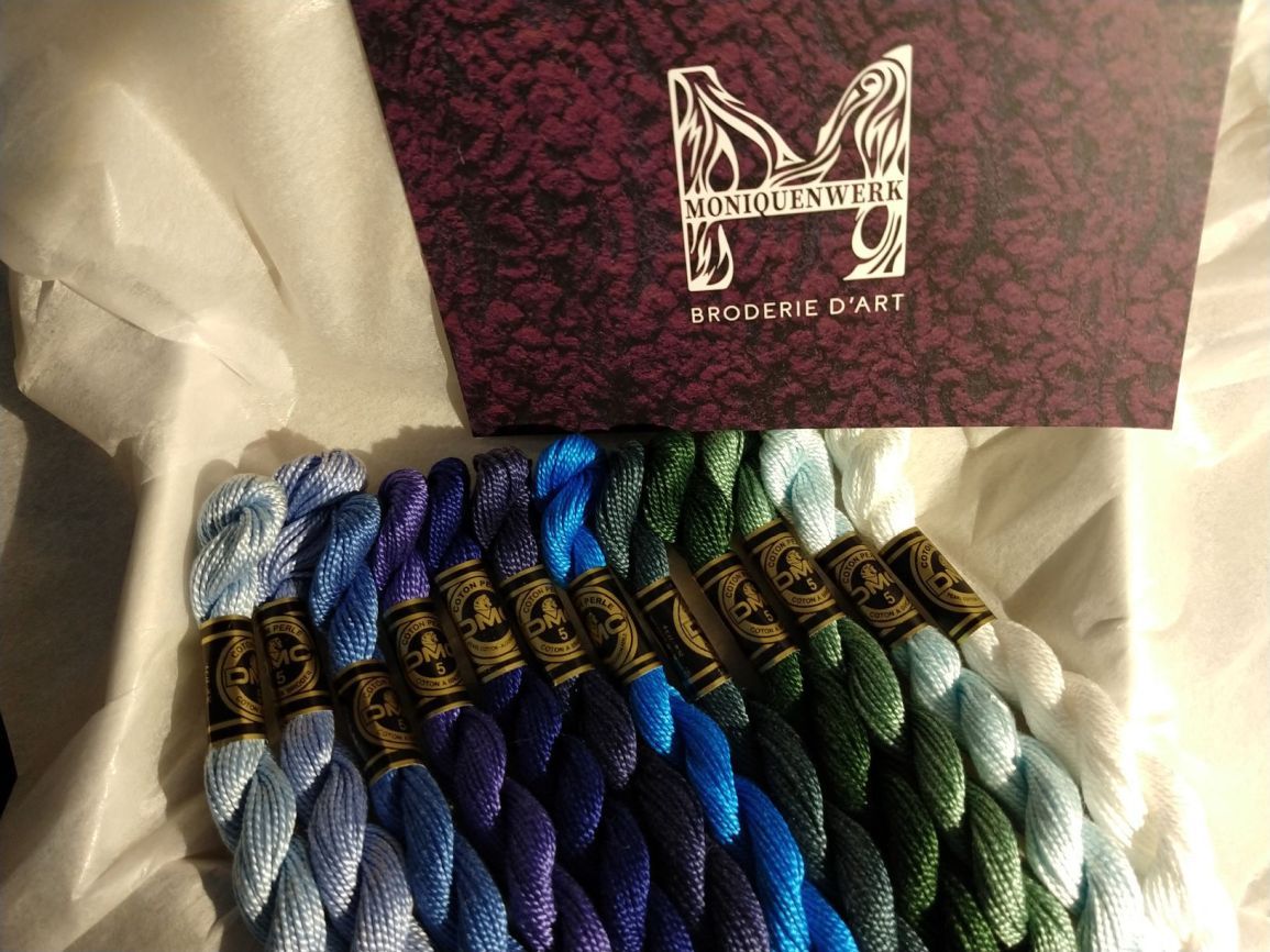 een assortiment van 12 strengen perlégaren van 25 m per streng,