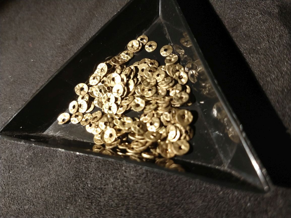 bronzen pailletten doorsnede 4 mm met relief in zakjes van 10 gr.