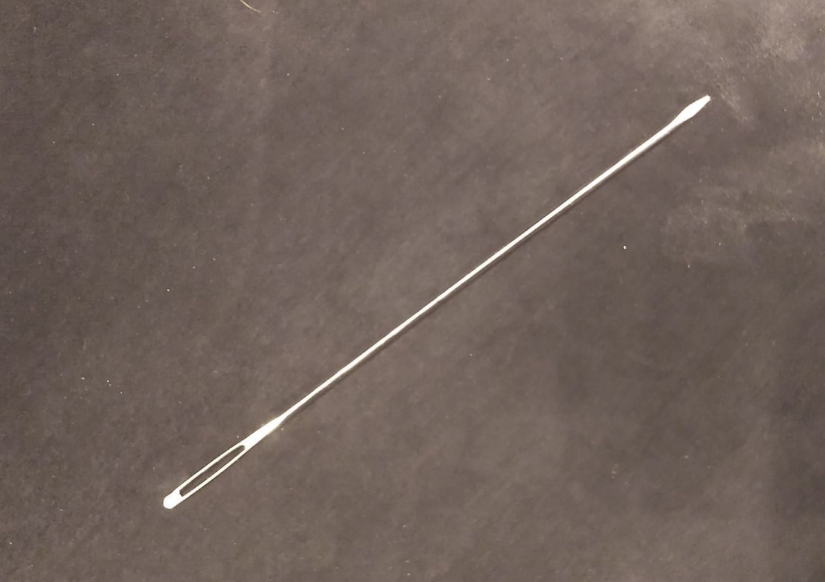 15 cm lange weefnaald 2,5mm dik, met stompe afgeplatte punt
