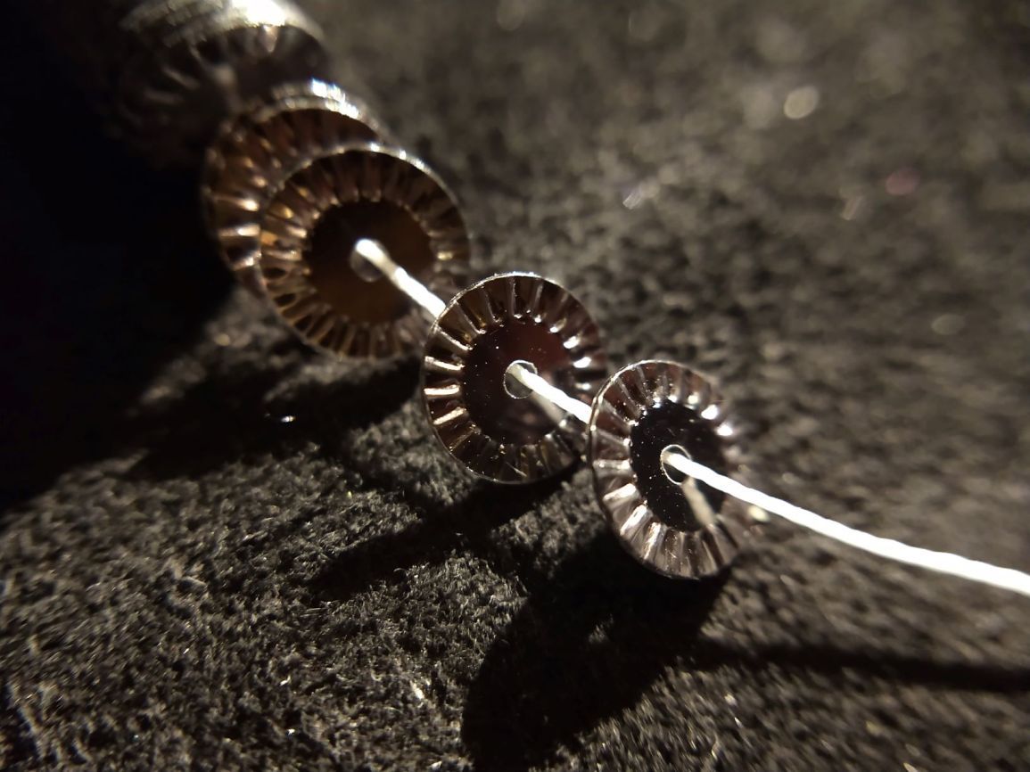 Haute couture pailletten op draad Ook pailletten worden op draad geleverd om met een lunevillenaald verwerkt te kunnen worden.