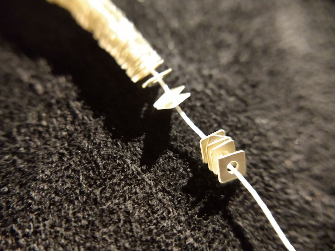 Haute couture pailletten op draad Ook pailletten worden op draad geleverd om met een lunevillenaald verwerkt te kunnen worden.