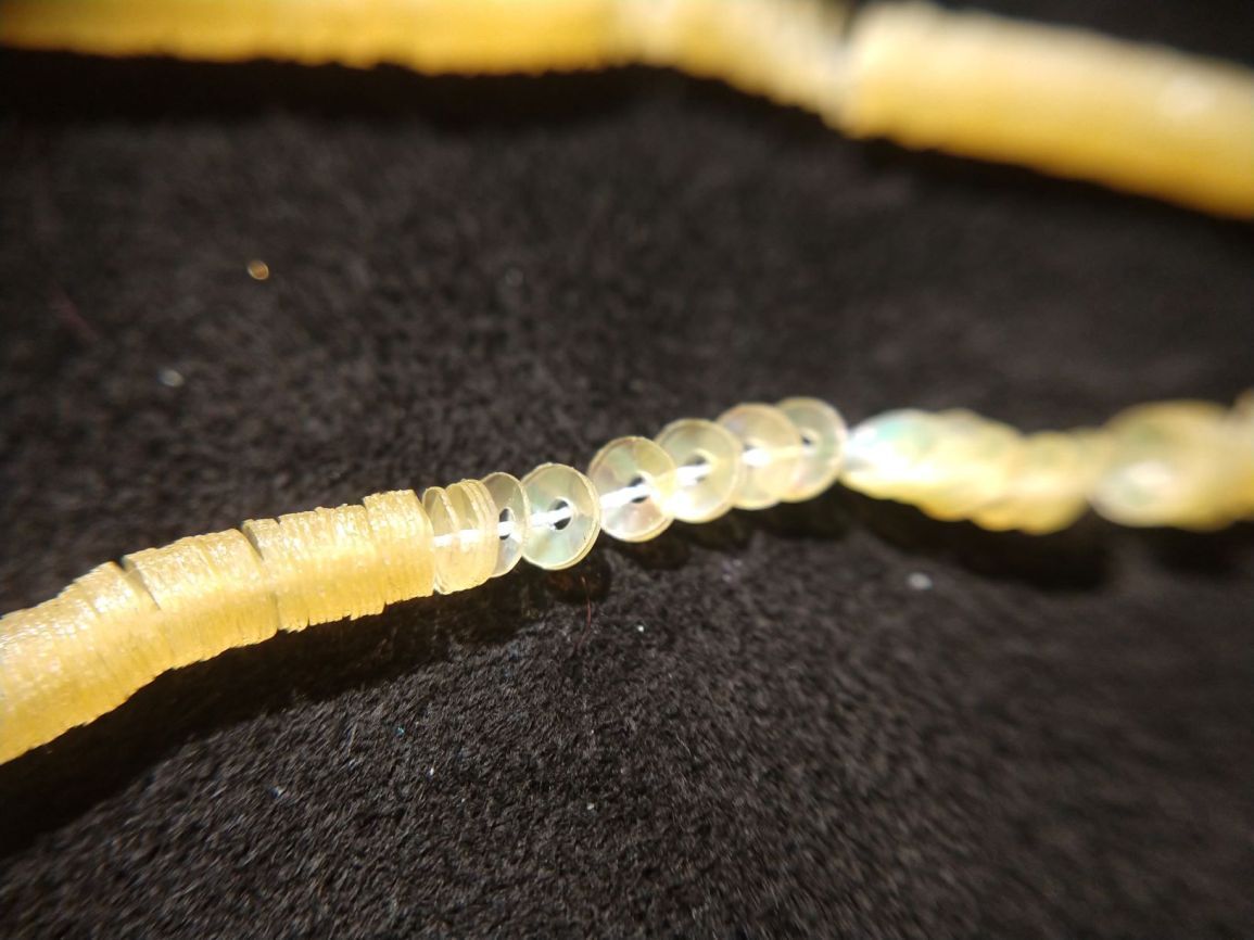 pailletten, 3mm cuvettes, geel transparant met iriserende finish, op draad van ca 1000 stuks